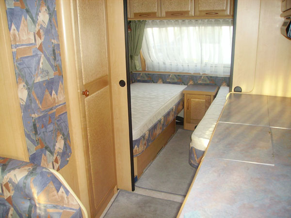 Modello: Hobby Deluxe 495 - VENDUTA Lunghezza: 4,95 metri Posti letto: 4 posti salottino girevole + 2 singoli letti con doghei Accessori di serie: wc estraibile - scaldino peracqua calda elettrico